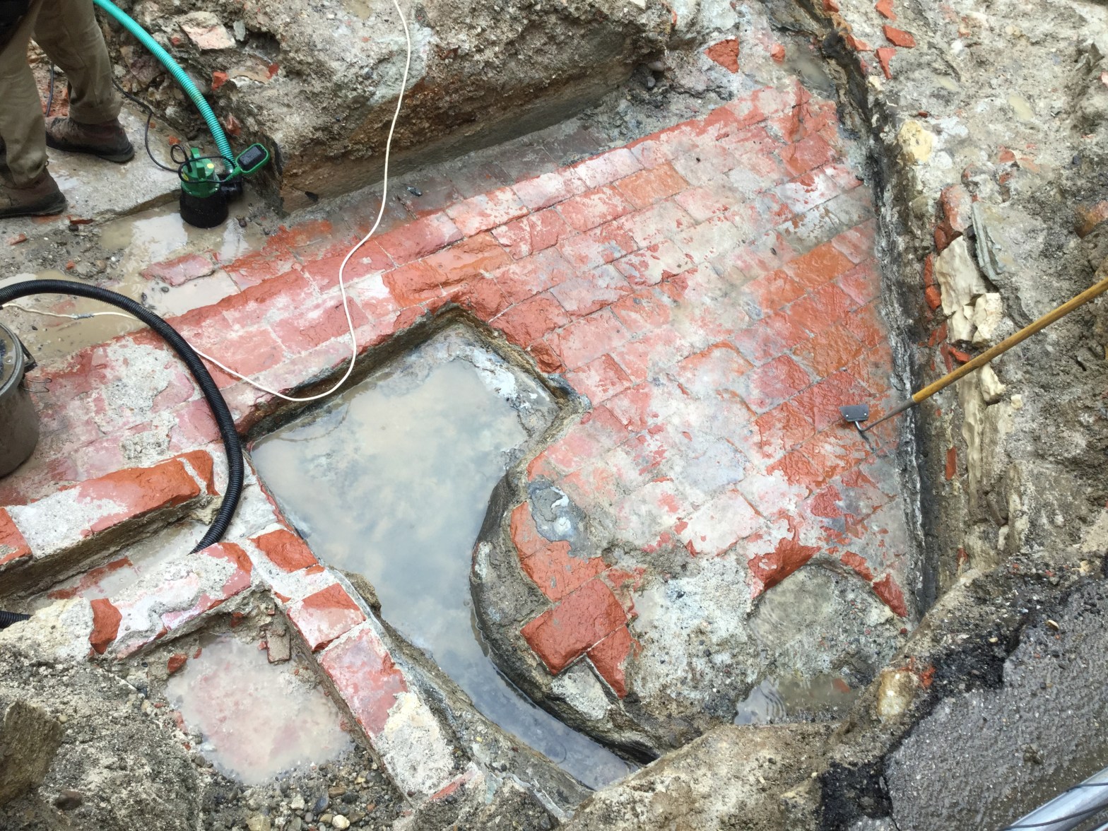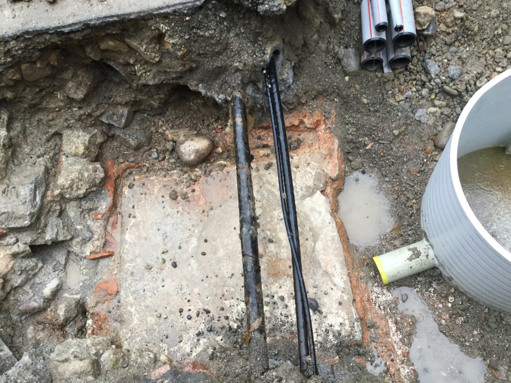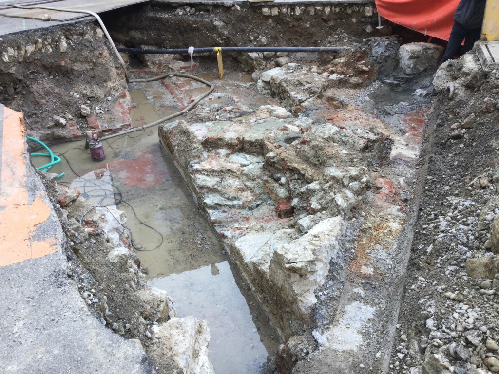 Beim Beobachten der Grabungen fällt auf, dass die Thermalwasserleitungen bisher über den archäologisch wertvollen Strukturen lagen. Nicht wenige Leitungen liegen auf historischen Schichten und benutzen diese zu ihrem Zweck: z.B dienen alte Bodenbeläge als Sohle von Leitungen. Ebenso folgen die Leitungen meist den Trassen noch älterer Leitungen und formen seltsame Knicke. Mit den Grabungen wird klar weshalb: Historische Baustrukturen mussten umfahren werden. Die heutigen Leitungsbauten verursachen einen grösseren Impakt, weil mit der neuen Grosstherme ein erstes mal seit Langem das Verteilsystem des Thermalwassers gründlich umgestaltet wird. So kommt auch mitten im Freibad ein tiefer Schacht zu stehen, für welchen derzeit Schicht um Schicht der historischen Vorgängerbäder abgetragen und ausgehoben werden.