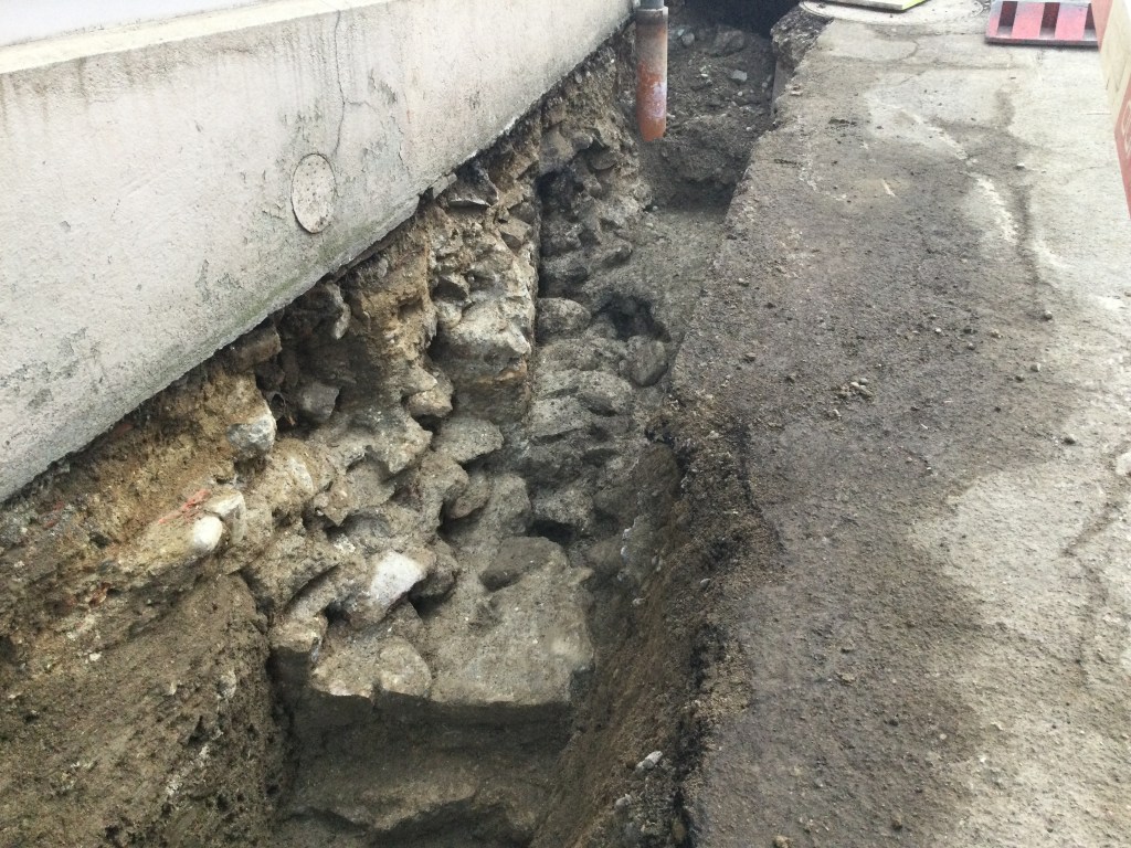 Die Grabungsarbeiten finden baubegleitend auch in den an den Kurplatz angrenzenden Gassen statt. An der Ecke Hörnligasse/Bäderstrasse kommen wenige Zentimeter unter der Strassenoberfläche unter der Nordwestfassade des ehemaligen Gasthof zur Sense wieder massive römische Mauern zum Vorschein. Ihre Ausrichtung entspricht bereits im Ochsengarten vorgefundenen römischen Mauern.