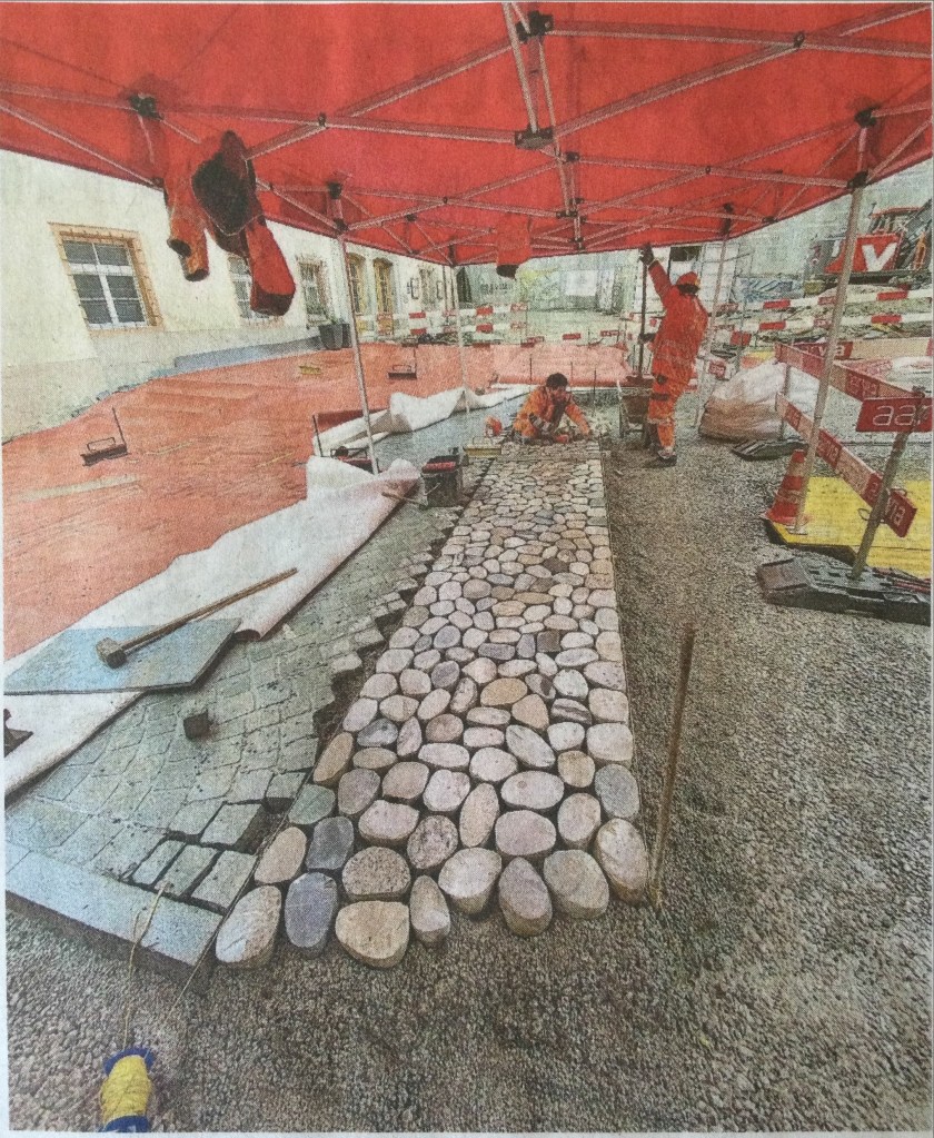 Die durch die römschen Funde ausgelösten Diskussionen über das Kulturerbe unter dem Kurplatz haben dazu geführt, dass nun nebst geplanten digitalen Vermittlungsangeboten auch die beiden römischen Bäder Frei- und St. Verenbad in den Platzbelag gepflästert werden. Die Ausdehnung der beiden quasi 2000-jährigen Volksbäder wird mit Flusswacken, also aufgeschnittenen Flusssteinen, im Platzbelag ausgezeichnet. Die originalen Mauern der beiden Bäder liegen mehrheitlich noch einige Zentimeter darunter erhalten.